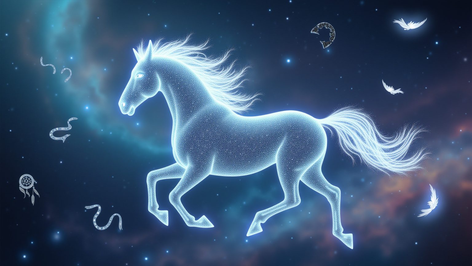 - Ein zahmer, weißer Mustang: Könnte für innere Ruhe und spirituelles Wachstum stehen.